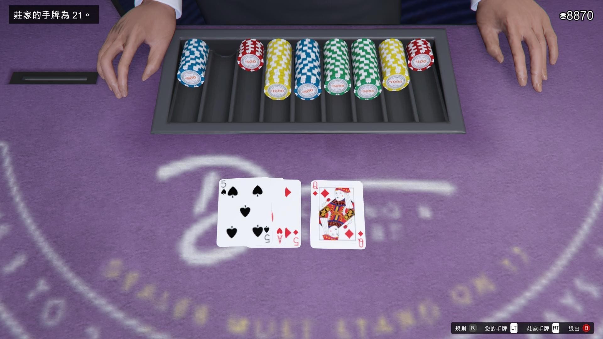 8、最接近21點且不超過的玩家獲勝。